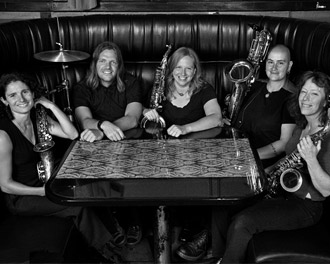 Amy Denio [alto sax, voice], Jessica Lurie [alto & tenor sax, voice], Sue Orfield [tenor sax, voice], Tina Richerson [baritone sax, voice], Robert Kainar [drums]