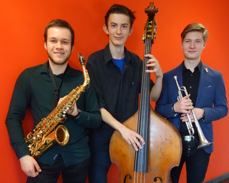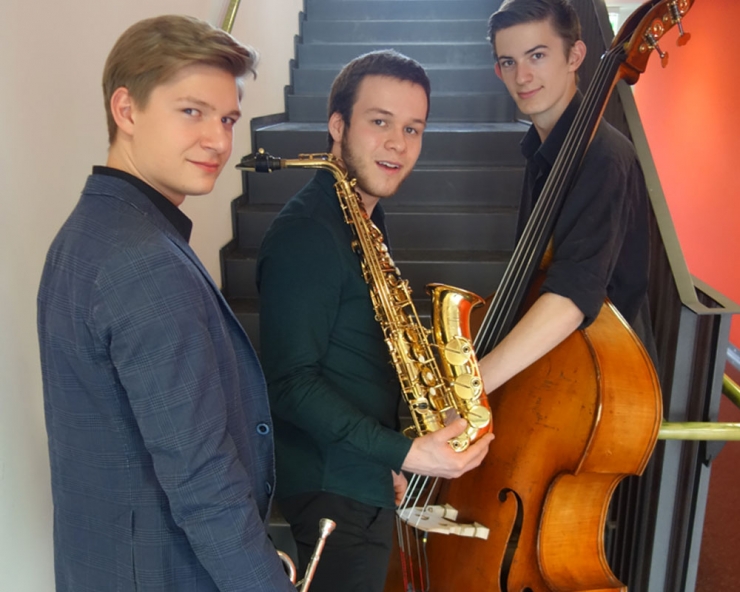 Anton Lange [alto sax, clarinet], Leo Zwiebel [bass], Dominik Leitgeb [trumpet flugelhorn],