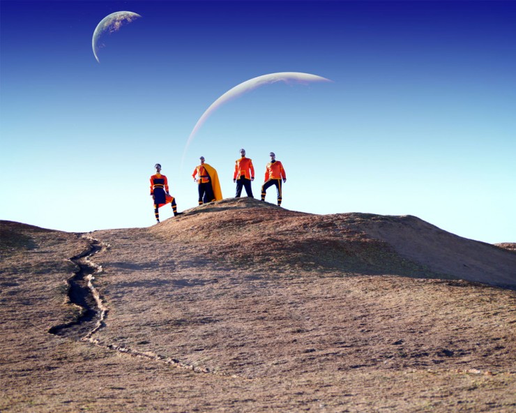 Bernhard Ullrich aka Captain Rich [Korkusian saxophone], Takashi Peterson aka Mr. Takaway [interstellar guitar], Tobias Fleischer aka Fleischer Doria [wormhole bass], Andi Bühler aka Loken Sand [big bang drums]